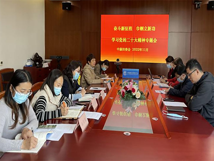 首先,妇委会学习委员、中心办副主任朱爱玲导学了党的二十大报告中关于妇女儿童、家庭和妇联工作的论述内容。妇委会主任吴雪梅传达学习了全国妇联关于学习贯彻党的二十大精神,引领广大妇女为全面建设社会主义现代化国家团结奋斗的意见要求。