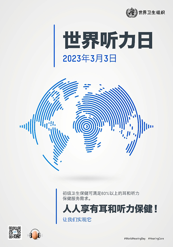 WHO世界卫生组织官网公布2023年世界爱耳日的主题是:Ear and hearing care for all! Let's make it a reality,中文版为:人人享有耳和听力保健!让我们实现它。