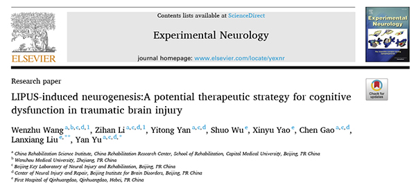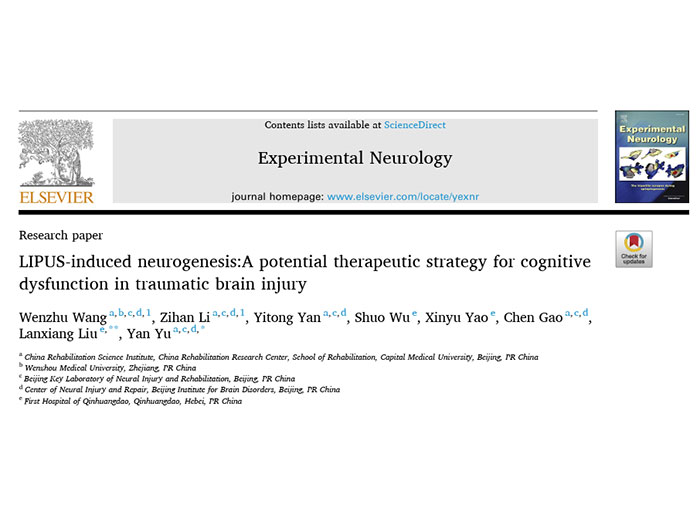 18luck下载康复医学研究部于艳主任团队在《Experimental Neurology》(IF:5.3)杂志上发表名为《LIPUS-induced neurogenesis: A potential therapeutic strategy for cognitive dysfunction in traumatic brain injury》的最新研究成果,揭示了低强度脉冲超声(LIPUS)在治疗创伤性脑损伤(TBI)后认知功能障碍方面的潜力。本论文通讯作者是18luck下载康复医学研究部主任于艳,共同第一作者是康复医学研究部王文竹和李子晗。
